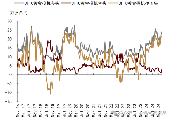 固然好意思国关税策略、DeepSeek对好意思国科技股的不利影响,以及地缘政事场面的市集温雅较高、预期调遣频频,年头以来黄金市集避险仓位的反应相平等闲。环球黄金ETF抓仓在1月净流出约13.7吨,其中,北好意思市集减抓较多,亚洲市集抓仓也有小幅下落。2月初,好意思股VIX指数波动,SPDR黄金ETF抓仓边缘有所增多,但适度2月5日,环球黄金ETF抓仓较1月末水平接续下落。因而咱们觉得,避险需求或并非年头以来金价上行的主要复古,即黄金市集或尚未对营业摩擦、风险金钱波动、地缘政事等潜在风险进行充分订价,不细则性来去可能仍有空间。