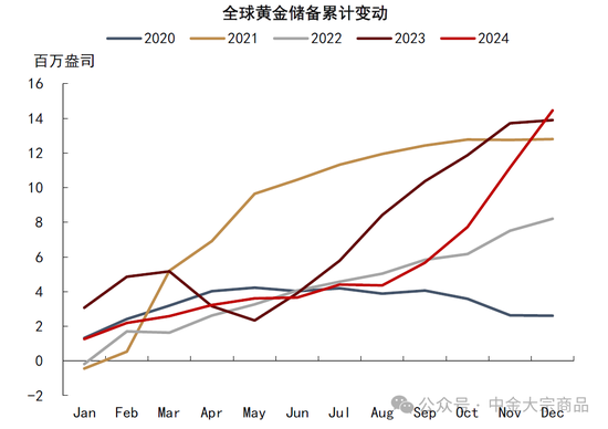 年头以来黄金期货市集投契情谊回升,1月COMEX黄金投契净多头累计增抓约27%。好意思债长端利率回落的影响以外,咱们觉得可能也受到了现货流动性病笃的一定影响;不错看到,跟着COMEX黄金期货投契空头一度降至2020年以来最低水平,投契多头与空头抓仓比值冲高,与2Q20的情形一样。此外,连年来环球什物黄金投资需求处于历史偏高水平,可能也使得黄金市集关于现货营业病笃的明锐性有所上涨。咱们测算2024年环球什物黄金投资需求达到4332万盎司,同比增多约14%,高于咱们此前预测。其中,环球央行在旧年11-12月黄金价钱回调之际加速黄金储备增抓次序。据IMF数据,2024年环球央行黄金储备净增抓1450万盎司,同比增多约4%,11-12月的增抓主力为我国和土耳其央行。此外,我国金条投资需求主导环球私东谈主部门什物黄金投资需求增长,据中国黄金协会数据,2024年我国金条及金币投资需求同比增多约25%。