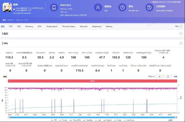 实测发达亮眼:剖析30分钟《原神》超高帧率款式下,开启电扇后机身最高温仅42.7℃,平均帧率高达119.3帧;关闭电扇时也仅44.1℃,远优于同价位竞品。