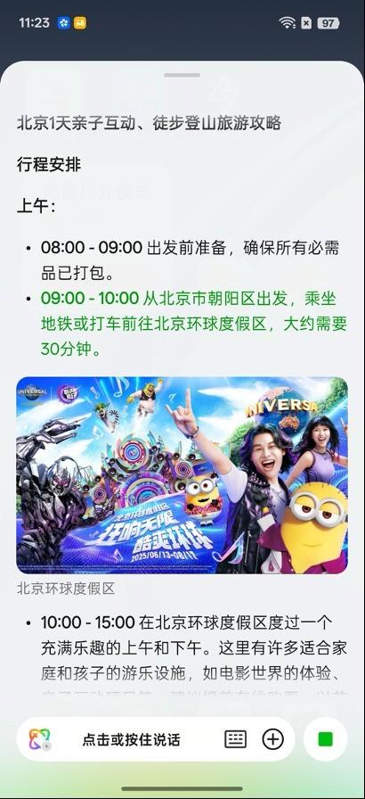 旅行攻略助手:可凭据东说念主数、偏好生成个性化旅行阶梯,包含图文先容、舆图导航、景点敬佩,简化出行决策。