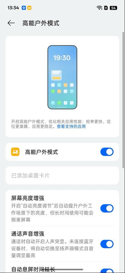 高能户外款式2.0:自动适配环境,夏日智能降温,冬季优化电板性能,屏幕亮度与对比度增强,合适外卖骑手、户外责任者。