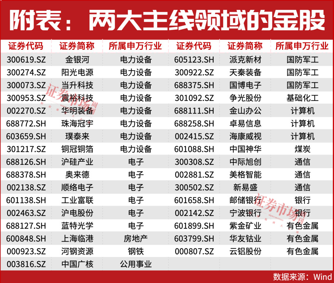 此外,这两大干线中的券商金股还有金星河、阳光电源、当升科技等。